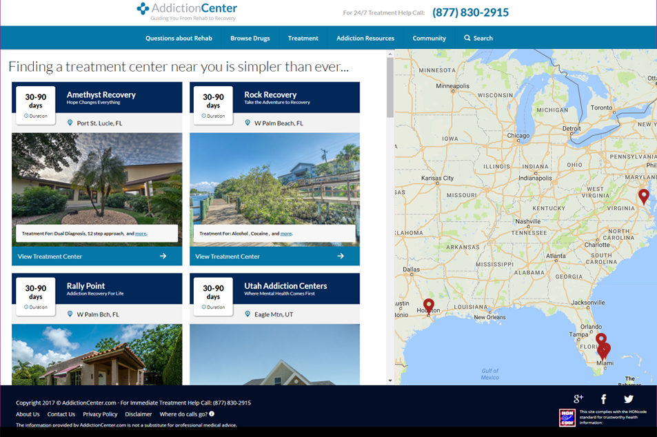 We were pretty successful at driving call traffic, but we wanted to offer something more to the users who felt turned-off by the pressure of speaking to a live person. When we discovered that people wanted as much flexibility in searching for treatment centers as they did searching for hotels, we decided to build upon our treatment locator map to give them the flexibility to search on their own terms. Not to mention the revenue opportunity that would be generated from listing within the search results.