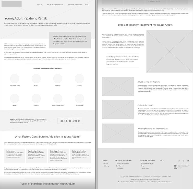 Now that we had a fairly accurate grasp of the audience, their mental model when searching for rehab, and their pain points, we started to develop the artifacts needed to verify the bulk of our future design decisions.